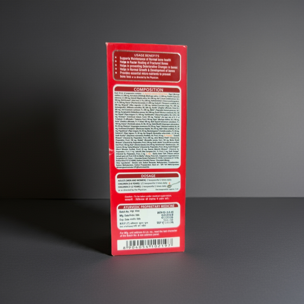 Aimil Boniheal Suspension Syrup is an advanced Ayurvedic formulation designed to promote optimal bone health and accelerate recovery from bone-related ailments. This unique blend combines essential minerals and potent herbal extracts to stimulate bone-building cells, enhance bone density, and facilitate faster healing of fractures.