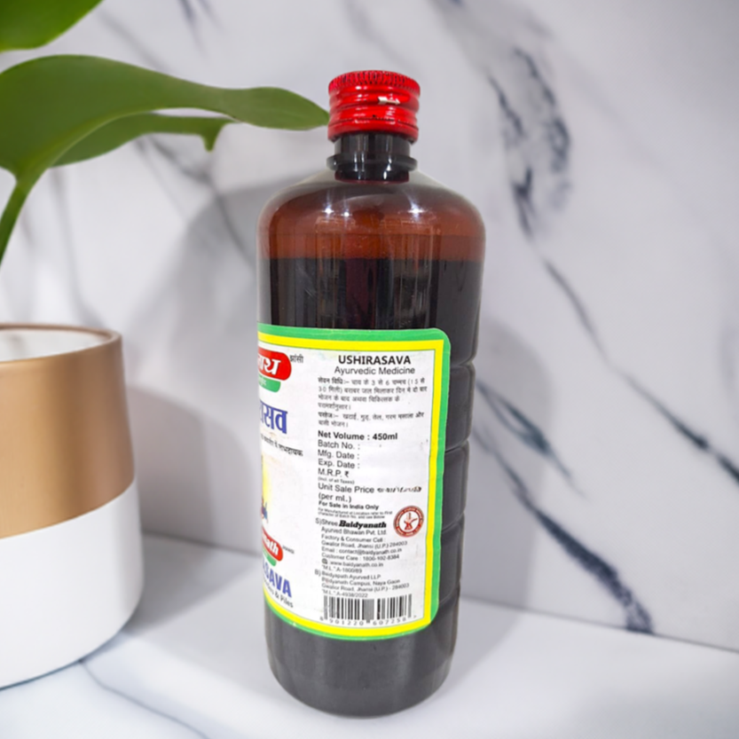 Baidyanath Ushirasava is a traditional Ayurvedic formulation designed to address various health concerns, particularly those related to bleeding disorders and blood purification. This herbal tonic is crafted through a natural fermentation process, resulting in a self-generated alcohol content that aids in the effective delivery of both water- and alcohol-soluble herbal constituents to the body.
