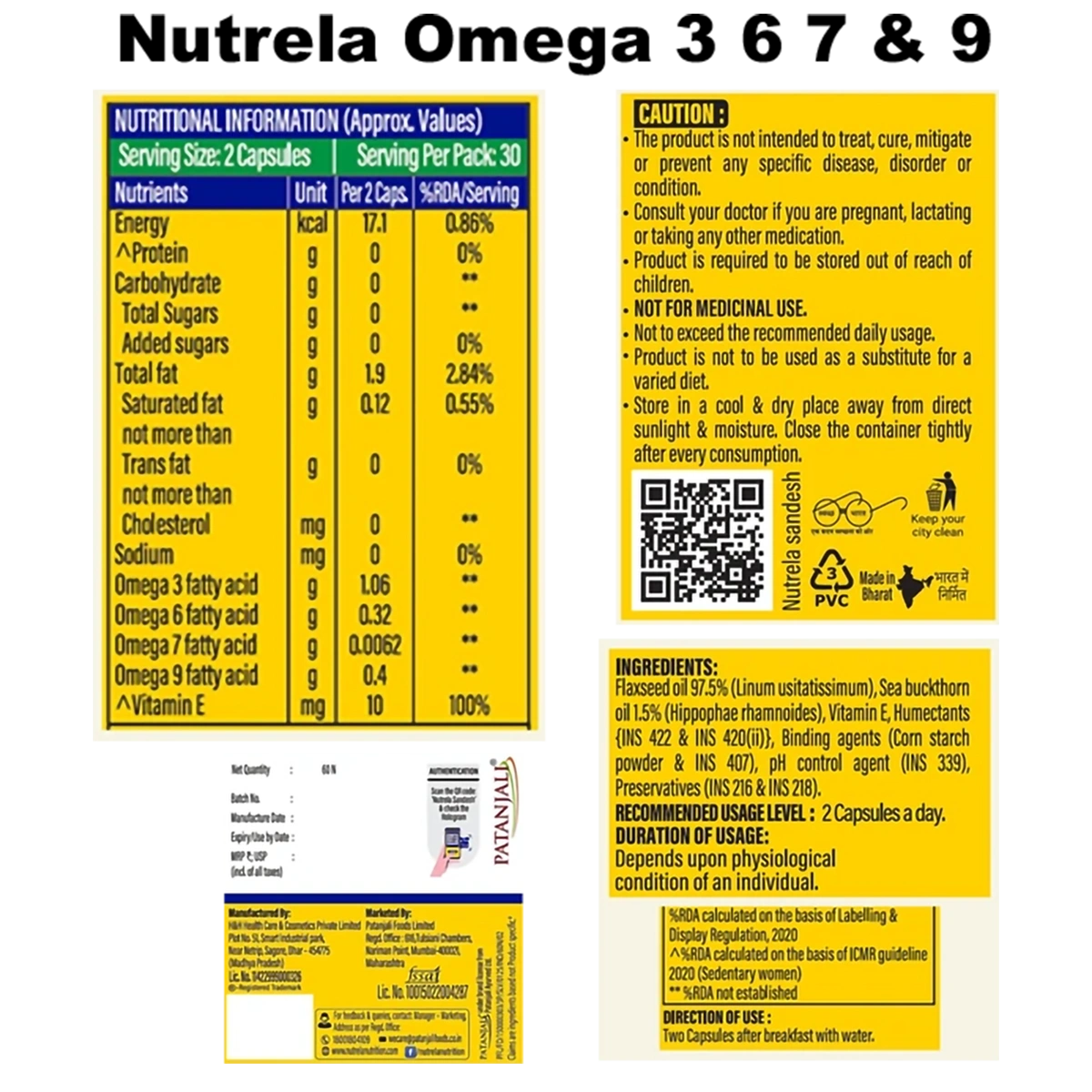 Patanjali Nutrela Daily Active + Omega 3 Softgel Capsules (30N + 60N)