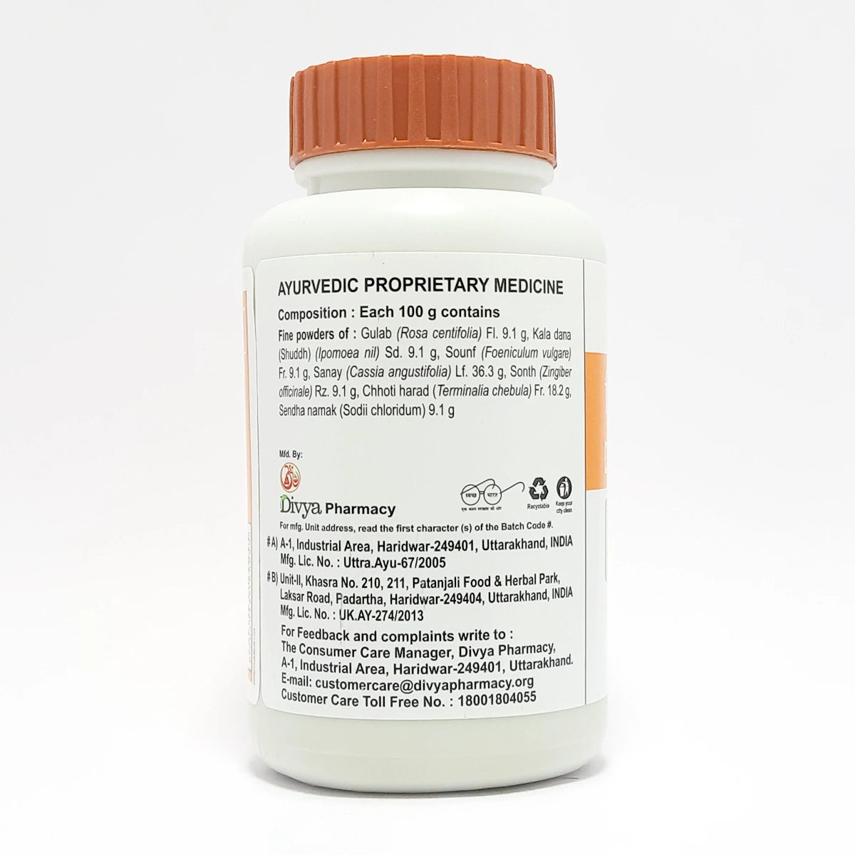 Patanjali Churna is a traditional Ayurvedic herbal blend crafted using fine powders of Gulab, Kala Dana (Shuddh), Saunf, Sanay, Sonth, Chhoti Harad and Sendha Namak. This formulation is known in Ayurveda for supporting natural digestive balance and promoting internal comfort. The combination of gentle herbs helps maintain routine wellness and encourages smooth daily functioning.