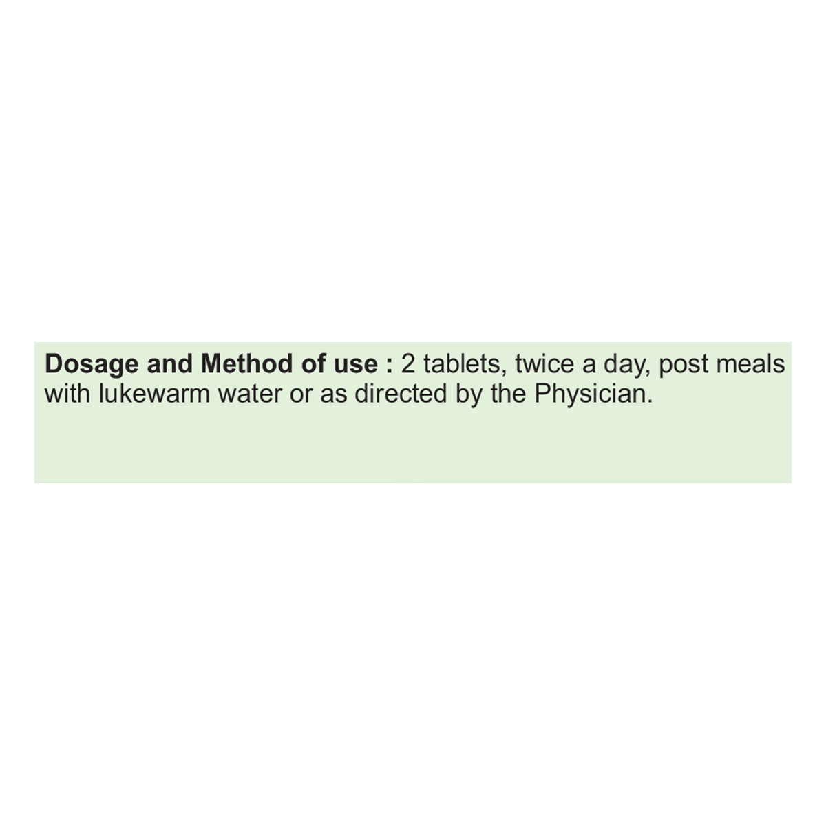 Take 2 tablets twice a day, after meals with lukewarm water, or as directed by the physician.