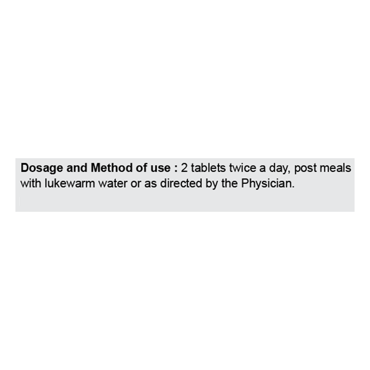 2 tablets a day, post meals with lukewarm water or as directed by the physician.