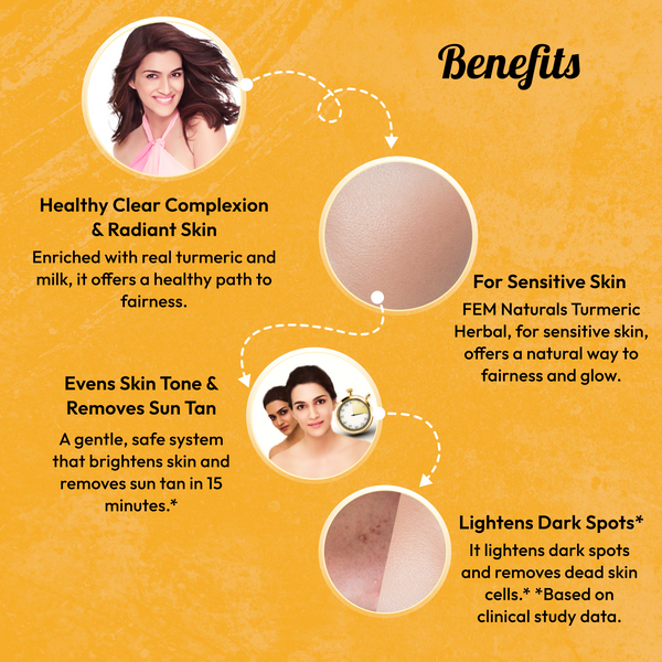Your skin faces daily exposure to dust, UV rays, and pollution — leaving it dull, tanned, and tired. Fem Gold Bleach helps your skin fight back with a gentle, effective, and ammonia-free formula that restores your natural glow in just a few minutes. It lightens and brightens the skin tone by removing dead skin cells and preventing new pigmentation, giving you a fresh, radiant, and gold-like glow every time you use it.