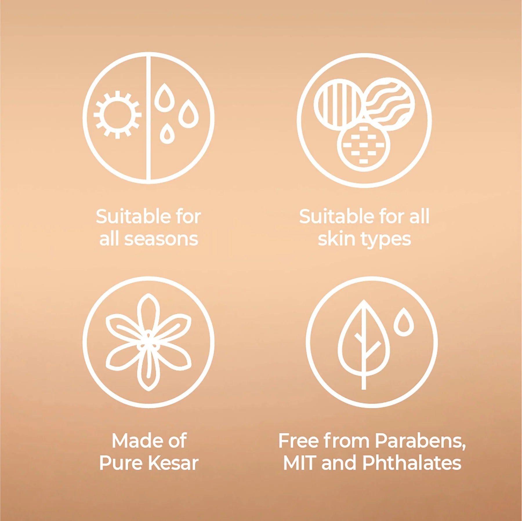 - Kesar (Saffron): A time-honored beauty herb known for improving complexion, promoting brightness, and reducing pigmentation and uneven skin tone.
