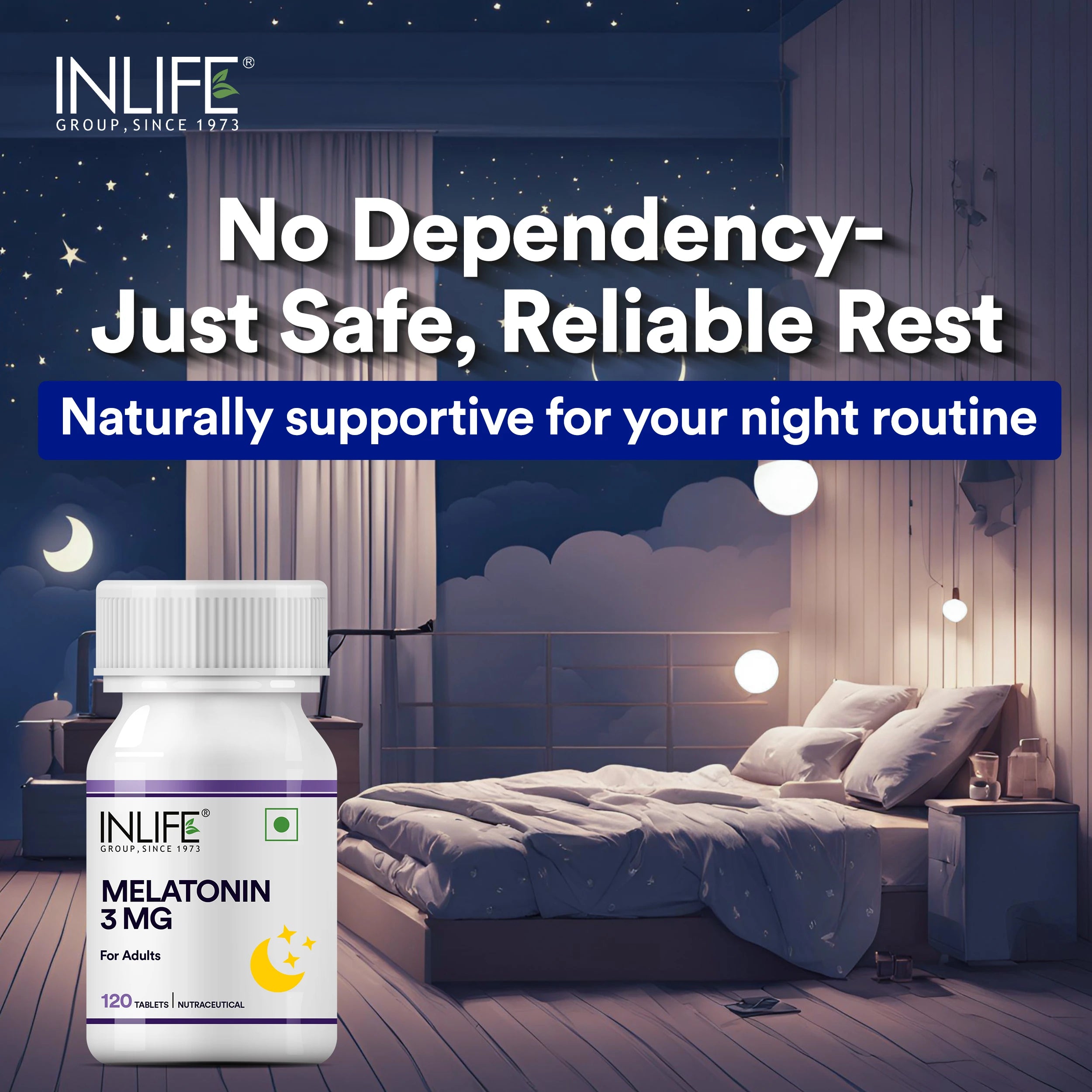 Inlife Melatonin 3mg tablet is a non-habit-forming sleep support. This melatonin sleep supplement offers a convenient and mild way to encourage healthy sleep, restfulness and help you maintain a consistent sleep routine.