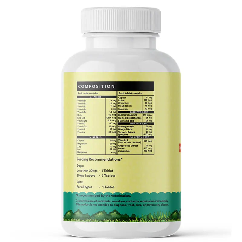 Vegetarian Tablets: Formulated in easy-to-consume tablets, suitable for pets.