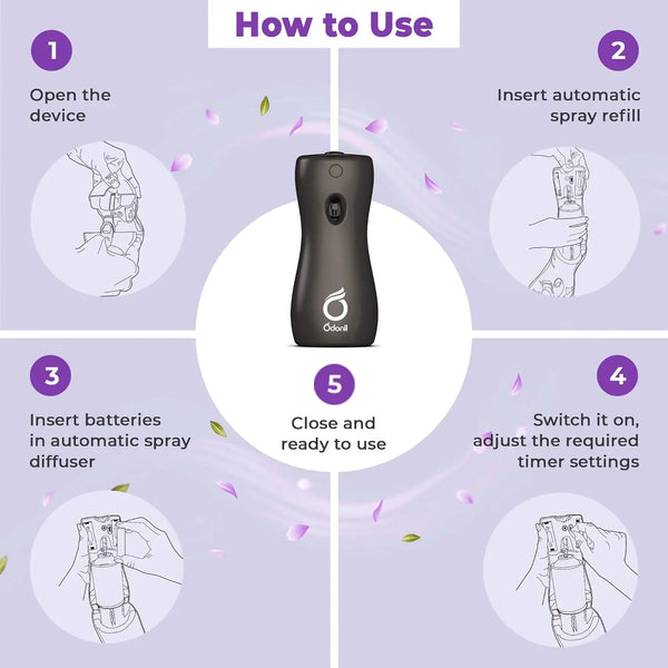 - Automatic Battery-Operated Dispenser: Enjoy effortless freshness with timed fragrance bursts.