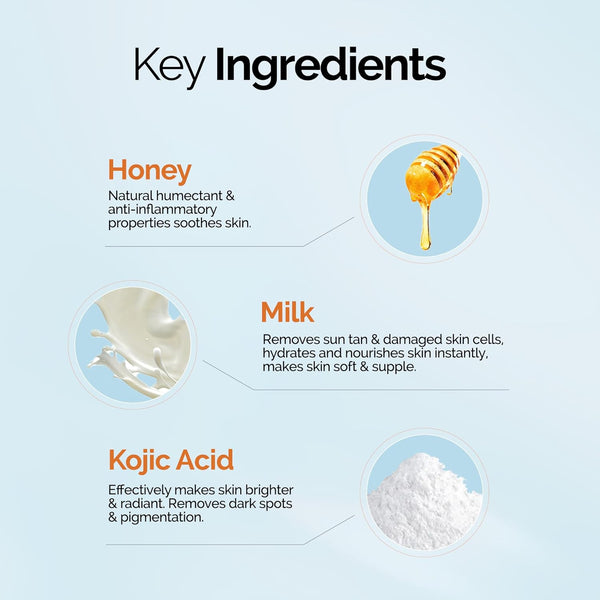 Honey, Kojic Acid, Milk Extract, Natural Botanicals