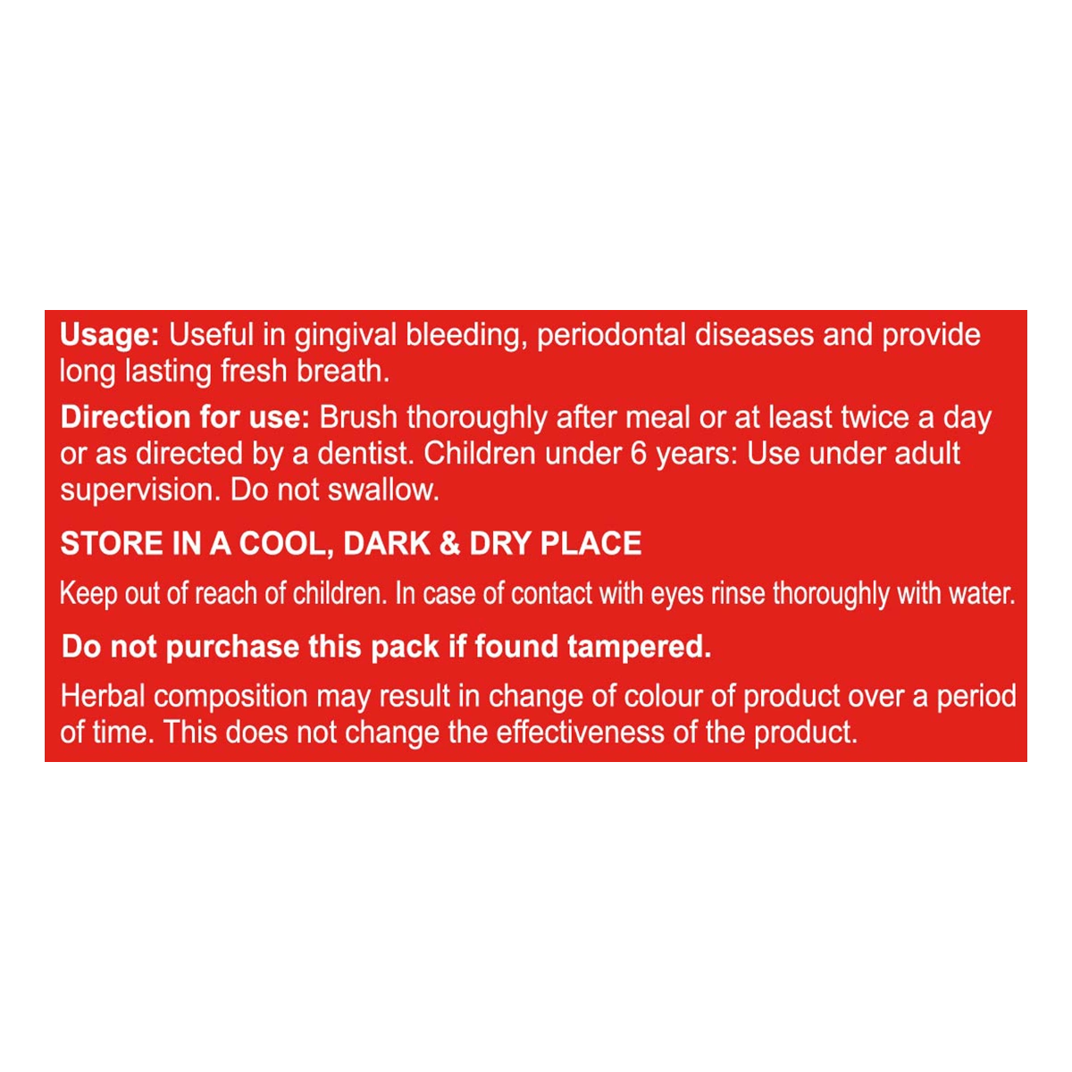 Patanjali Dant Kanti Fresh Active Gel is an herbal toothpaste formulated to support oral hygiene, reduce toothache, control gum bleeding, and freshen breath. Enriched with natural extracts like pudina, saunf, anar rind, mulethi, and clove oil, it helps maintain strong gums, healthier teeth, and long-lasting freshness.