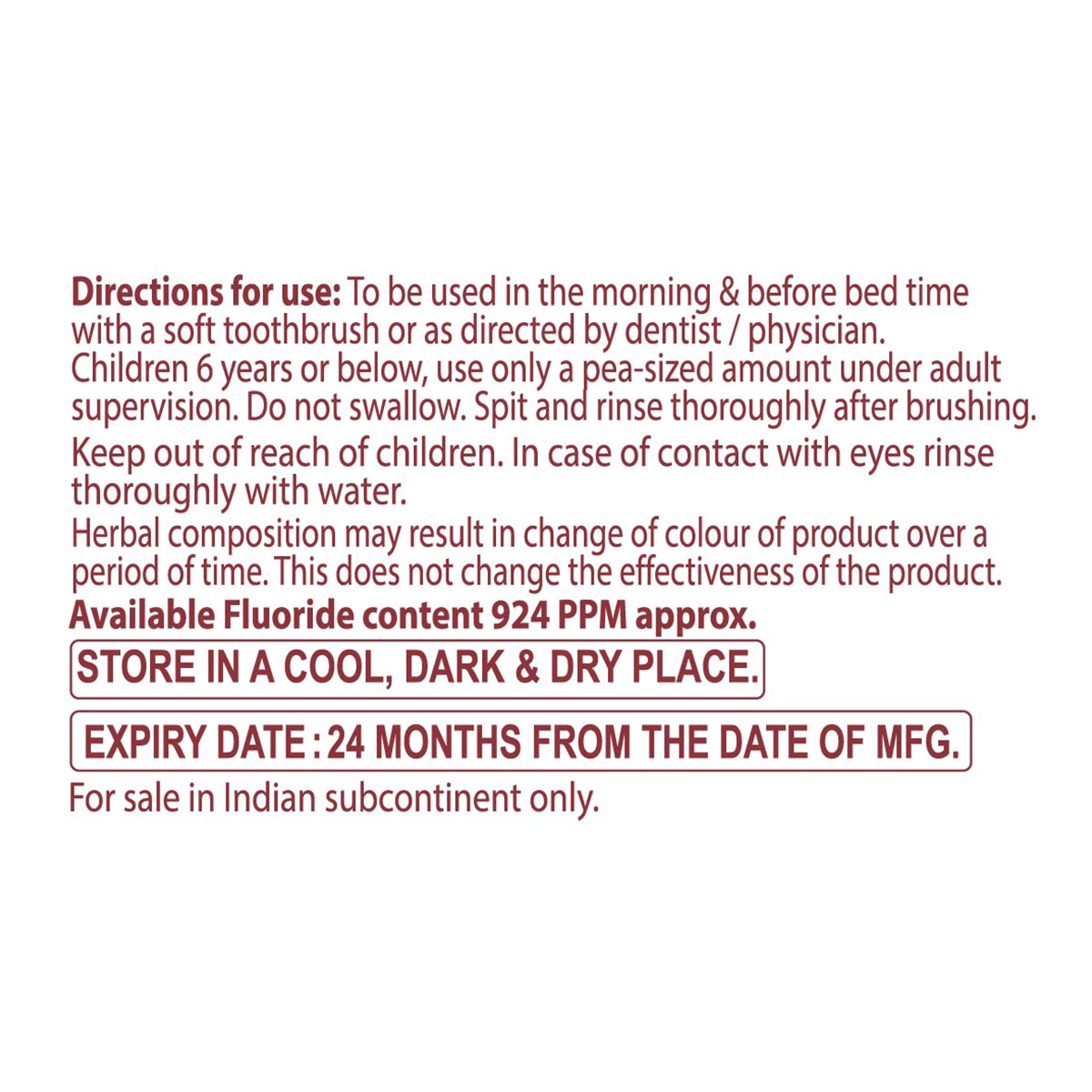 - Do not swallow. Spit and rinse thoroughly after brushing.