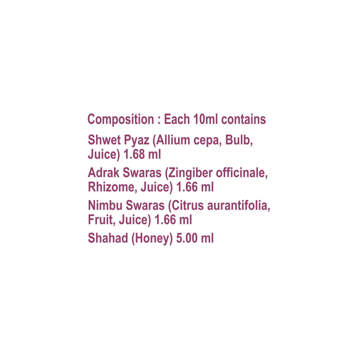 Shwet Pyaz (White Onion), Adrak Swaras (Ginger Juice), Nimbu Swaras (Lemon Juice), Shahad (Honey)