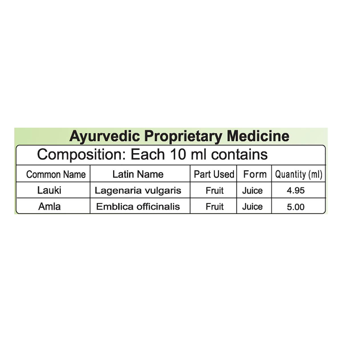 Lauki (Lagenaria siceraria), Amla (Emblica officinalis), Citric Acid, Sodium Benzoate, Potassium Sorbate, Tulsi Flavour, Mint Flavour.