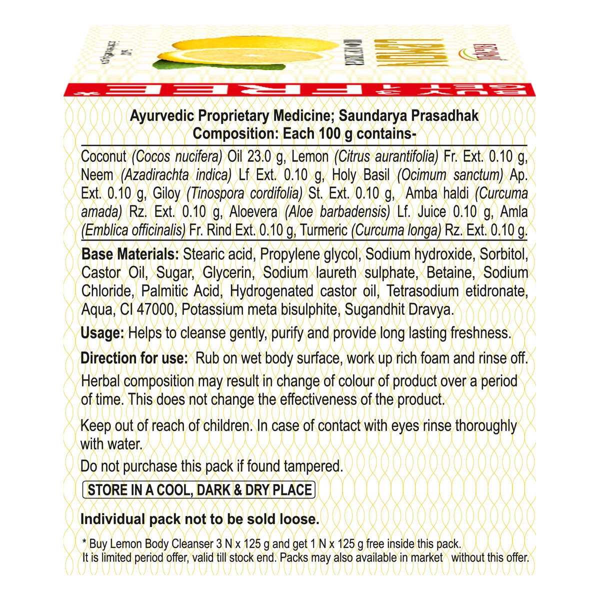 Patanjali Lemon Body Cleanser 125g B3 G1 Free