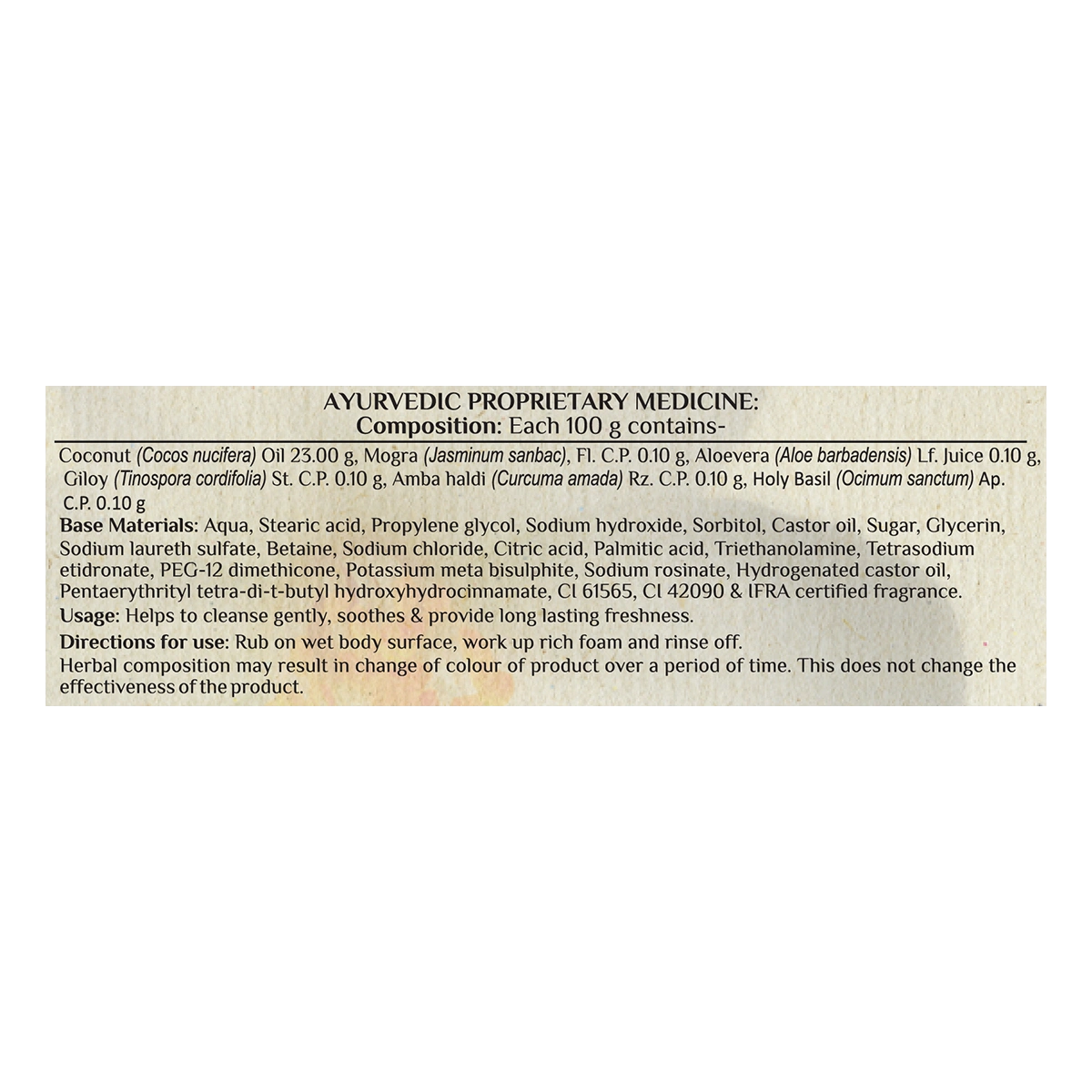 Coconut Oil, Mogra Flower Extract, Aloe Vera Juice, Giloy Extract, Amba Haldi Extract, Holy Basil Extract