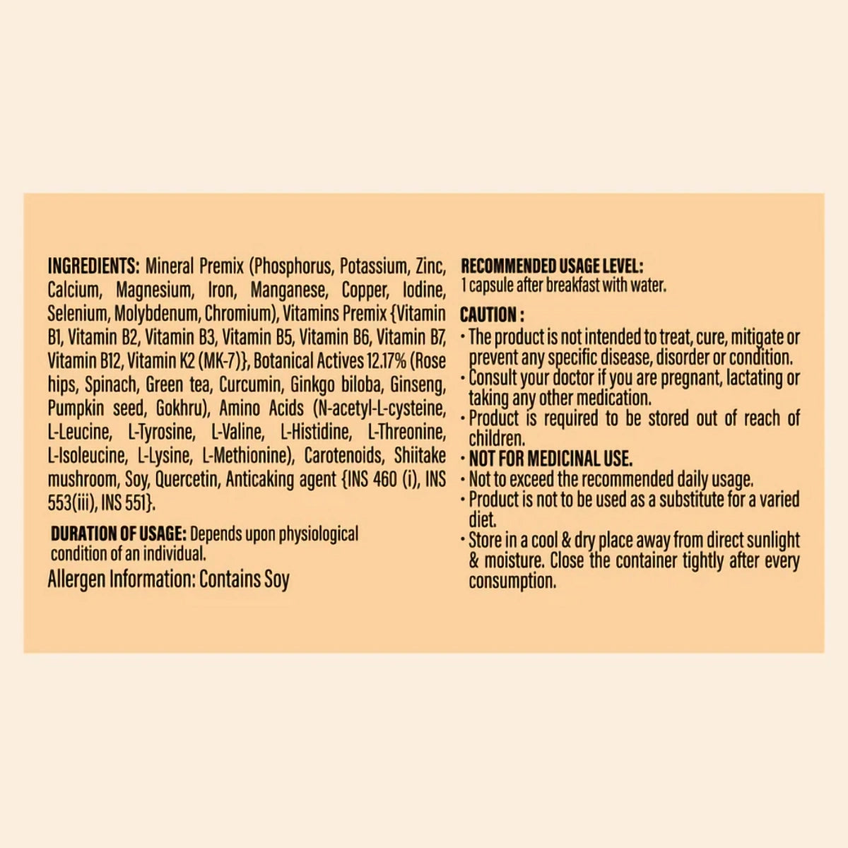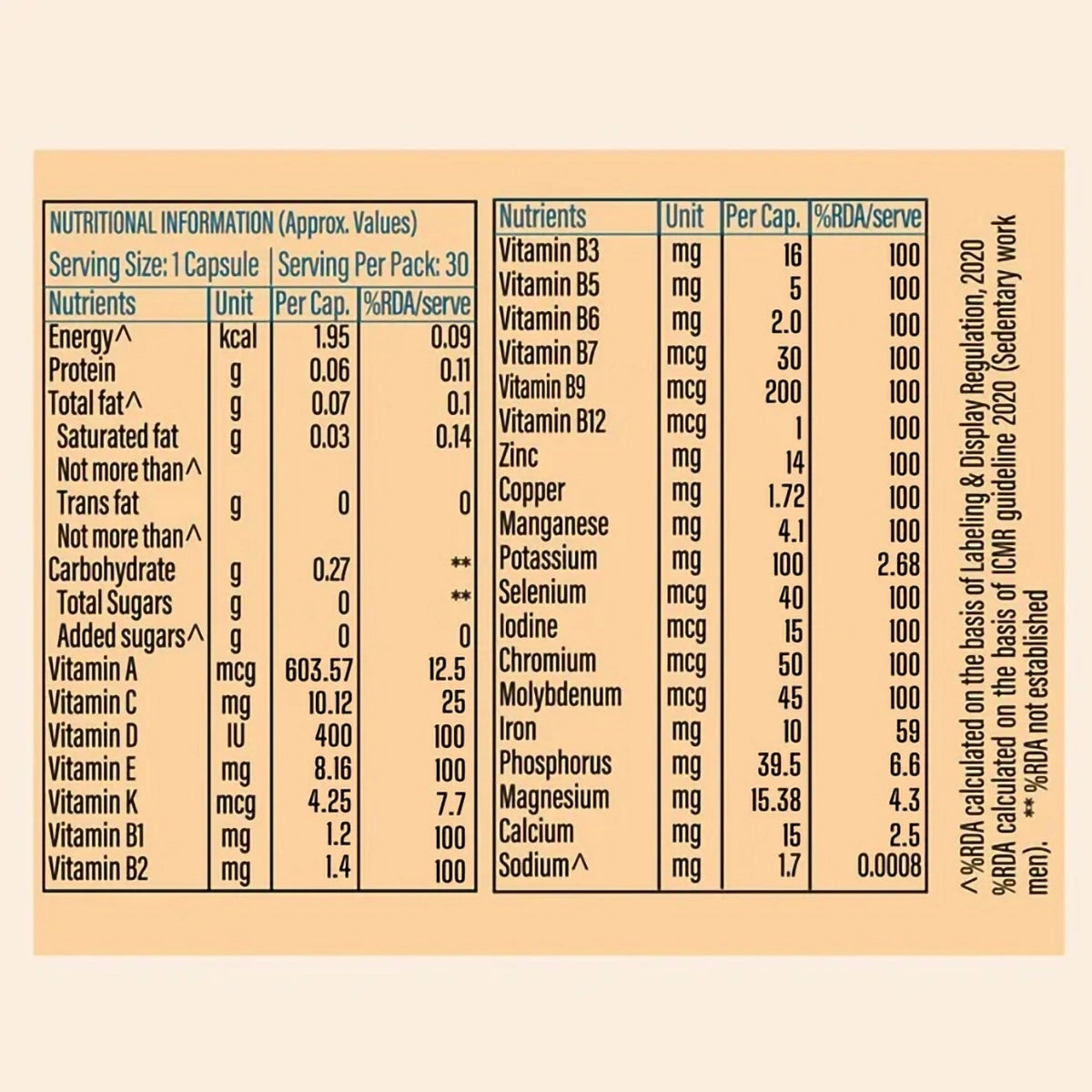 Patanjali Nutrela Daily Active Capsule is a comprehensive daily wellness formula enriched with essential vitamins, minerals, botanical extracts, amino acids, and bio-fermented nutrients. It is designed to support heart health, brain function, bone strength, energy levels, and immune wellness—making it ideal for everyday vitality and active living.