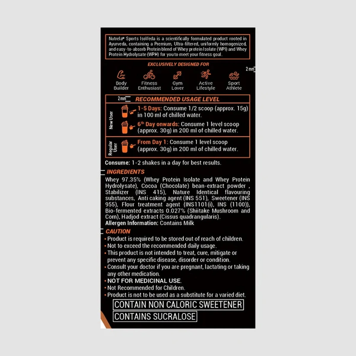 Patanjali Nutrela Sports Isoveda (Choc-Irish) is a high-performance whey isolate and hydrolysate blend designed for athletes and fitness enthusiasts. Enriched with BCAAs, glutamine, taurine, digestive enzymes, and bio-fermented herbal extracts, this advanced formula supports muscle strength, faster recovery, and sustained energy during intense training. Its rich Choc-Irish flavour mixes smoothly for an enjoyable workout shake.