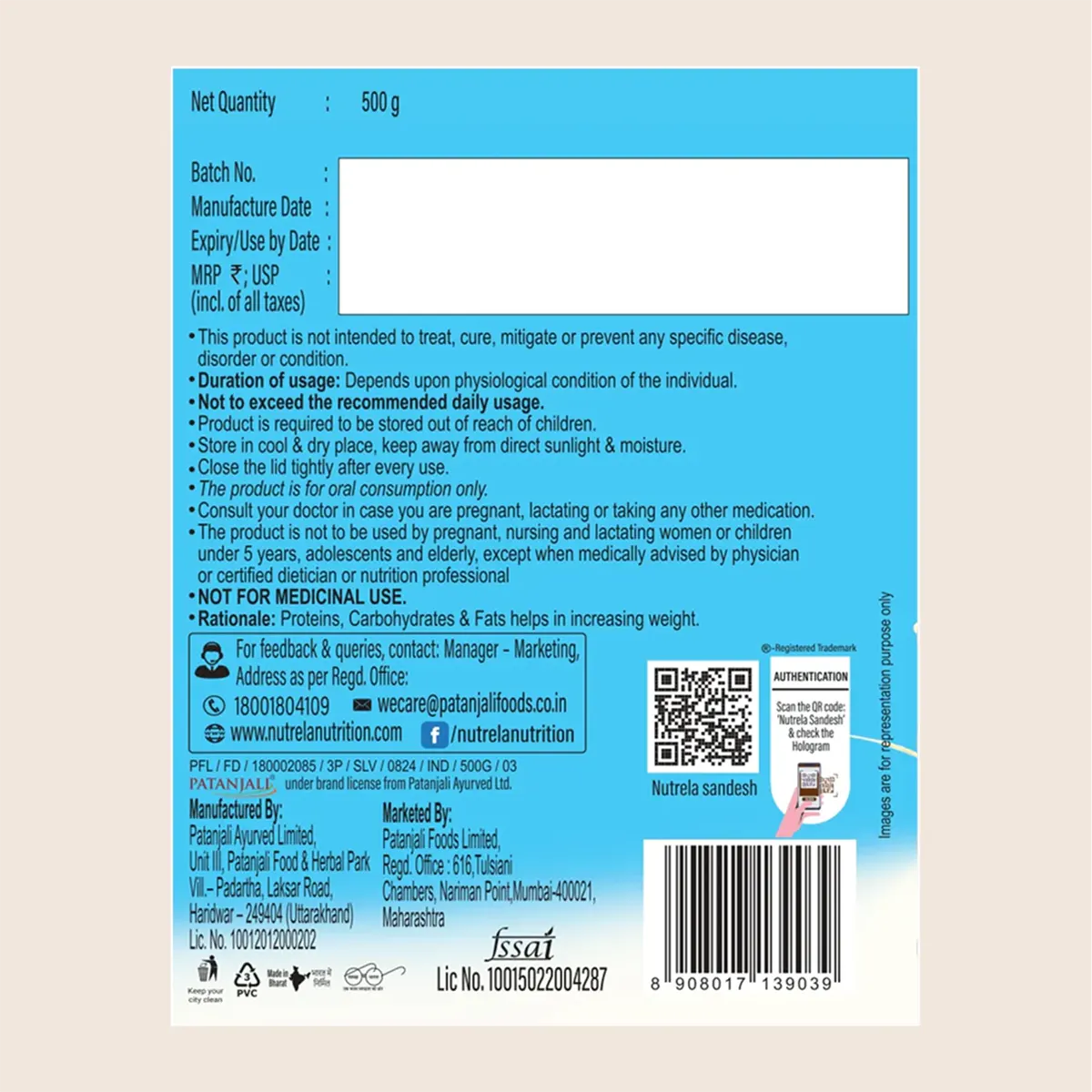 Patanjali Nutrela Weight Gain Powder is a balanced nutrition formula crafted to support healthy weight gain. Enriched with high-quality proteins, essential vitamins, minerals, and powerful botanical extracts, it helps boost calorie intake naturally while supporting muscle development and overall strength. Free from harmful chemicals, preservatives, and GMOs, this nutritious blend is suitable for both vegetarians and non-vegetarians.