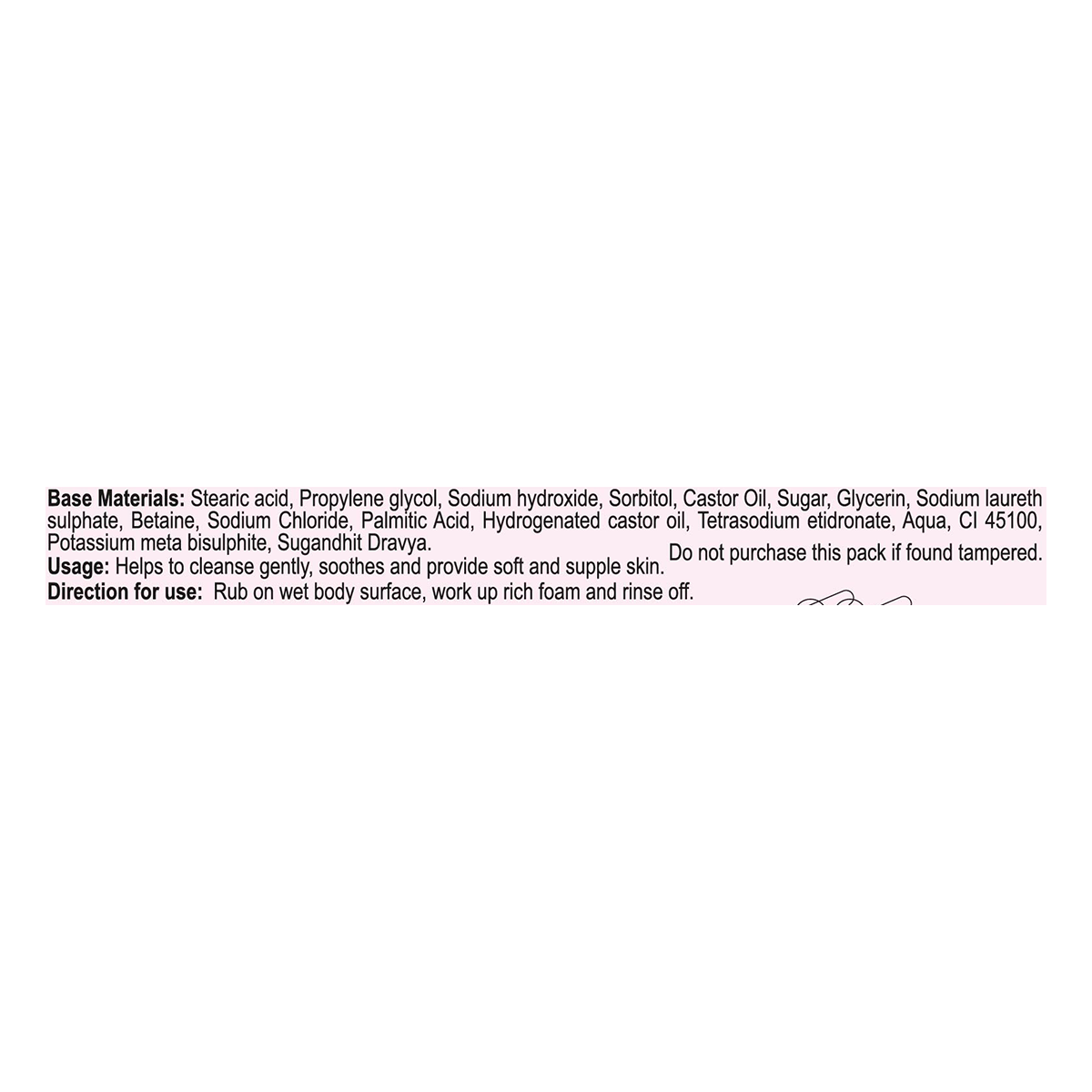 Base Materials: Stearic Acid, Propylene Glycol, Sodium Hydroxide, Sorbitol, Castor Oil, Sugar, Glycerin, Sodium Laureth Sulphate, Betaine, Sodium Chloride, Palmitic Acid, Hydrogenated Castor Oil, Tetrasodium Etidronate, Aqua, CI 45100, Potassium Meta Bisulphite, Sugandhit Dravya.