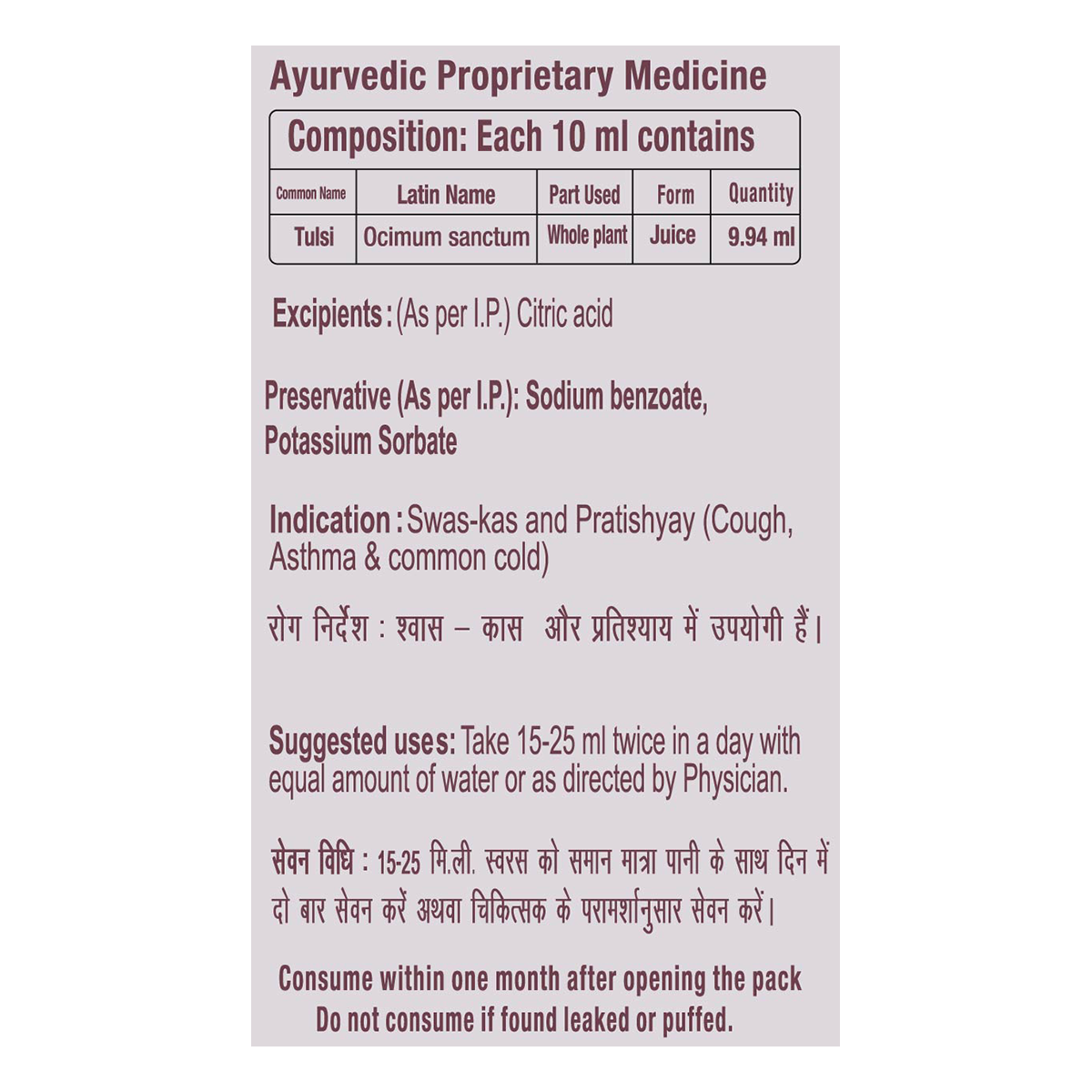 - Preservatives: Sodium Benzoate, Potassium Sorbate (Q.S.)