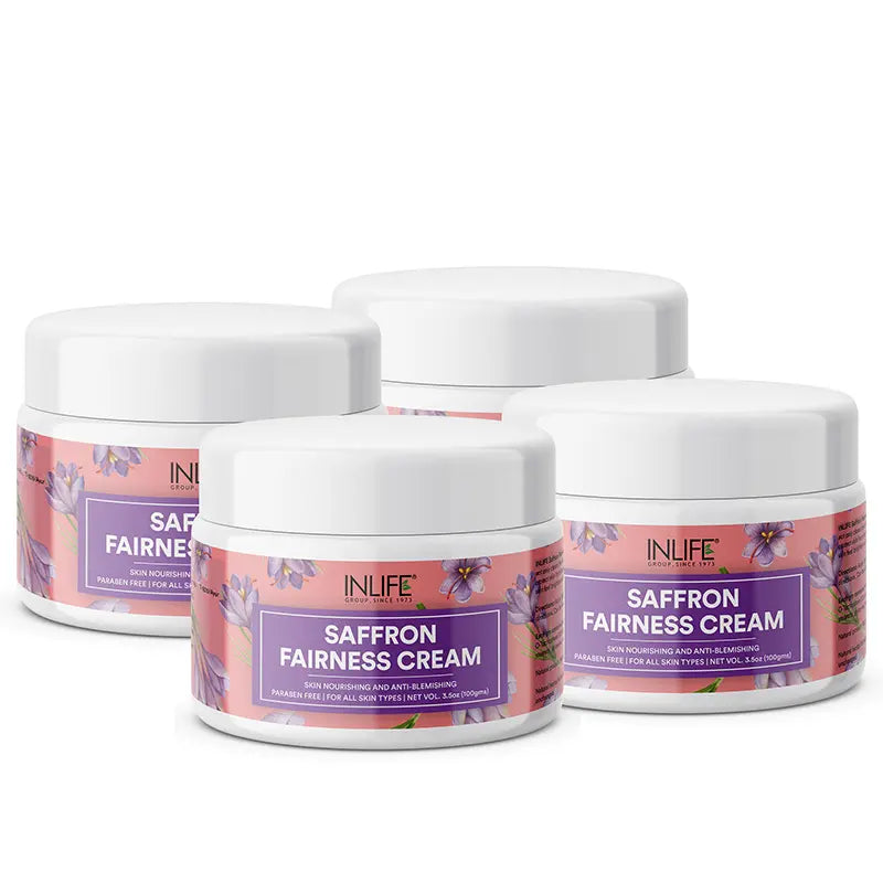 Natural Fairness Support: Inlife Natural Saffron Fairness Cream includes a blend of key Ayurvedic ingredients such as Kumkuma, Nimba Leaf, Kanyasara Leaf, and O-Tocopherol.