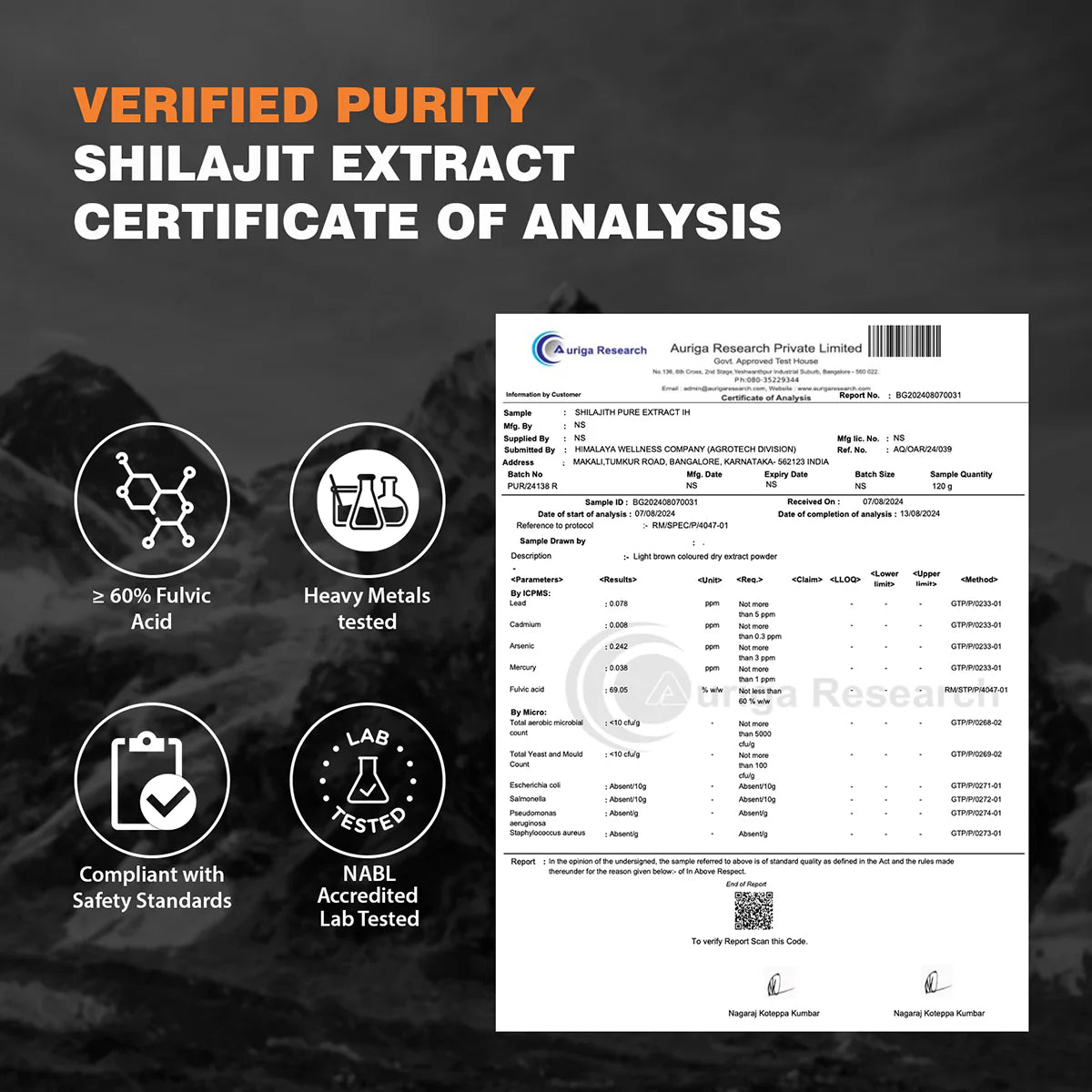 - Pure Himalayan Shilajit β Contains β₯60% Fulvic Acid, which supports nutrient absorption, detoxification, and improved energy metabolism. Helps promote strength, endurance, and healthy testosterone levels naturally.