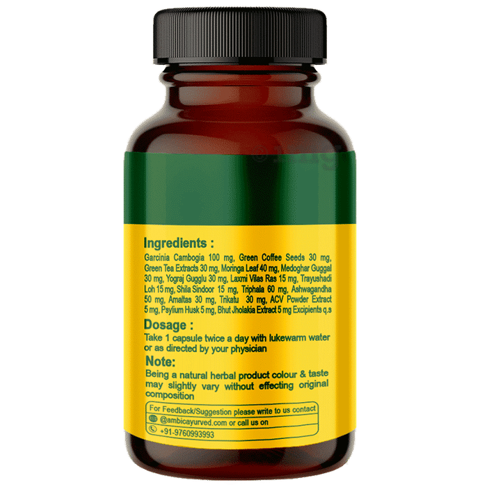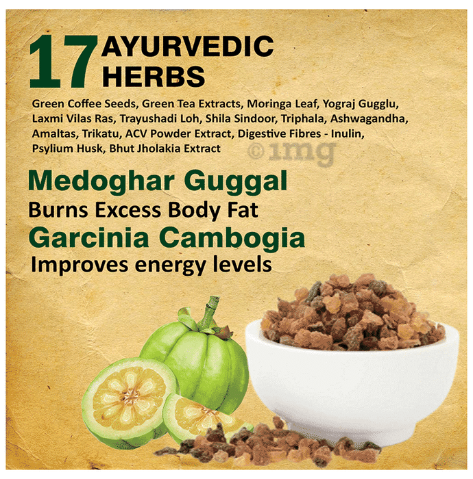 Garcinia Cambogia, Medohar Guggulu, Green Coffee Seeds, Moringa Leaf.