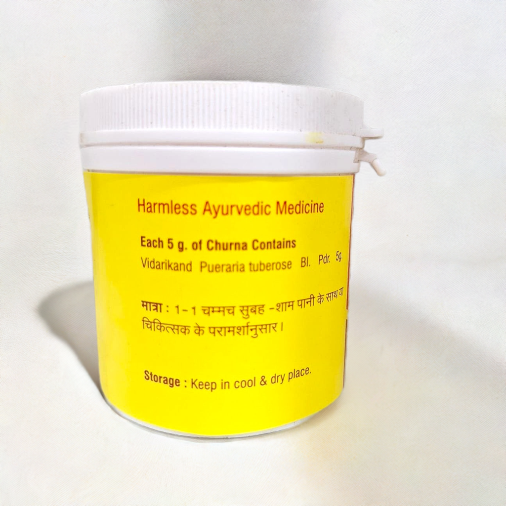 Vyas Vidarikand Churna is a traditional Ayurvedic formulation designed to enhance vitality, support reproductive health, and promote overall well-being. This offers a natural remedy for individuals seeking to improve energy levels, manage stress, and support a healthy lifestyle.