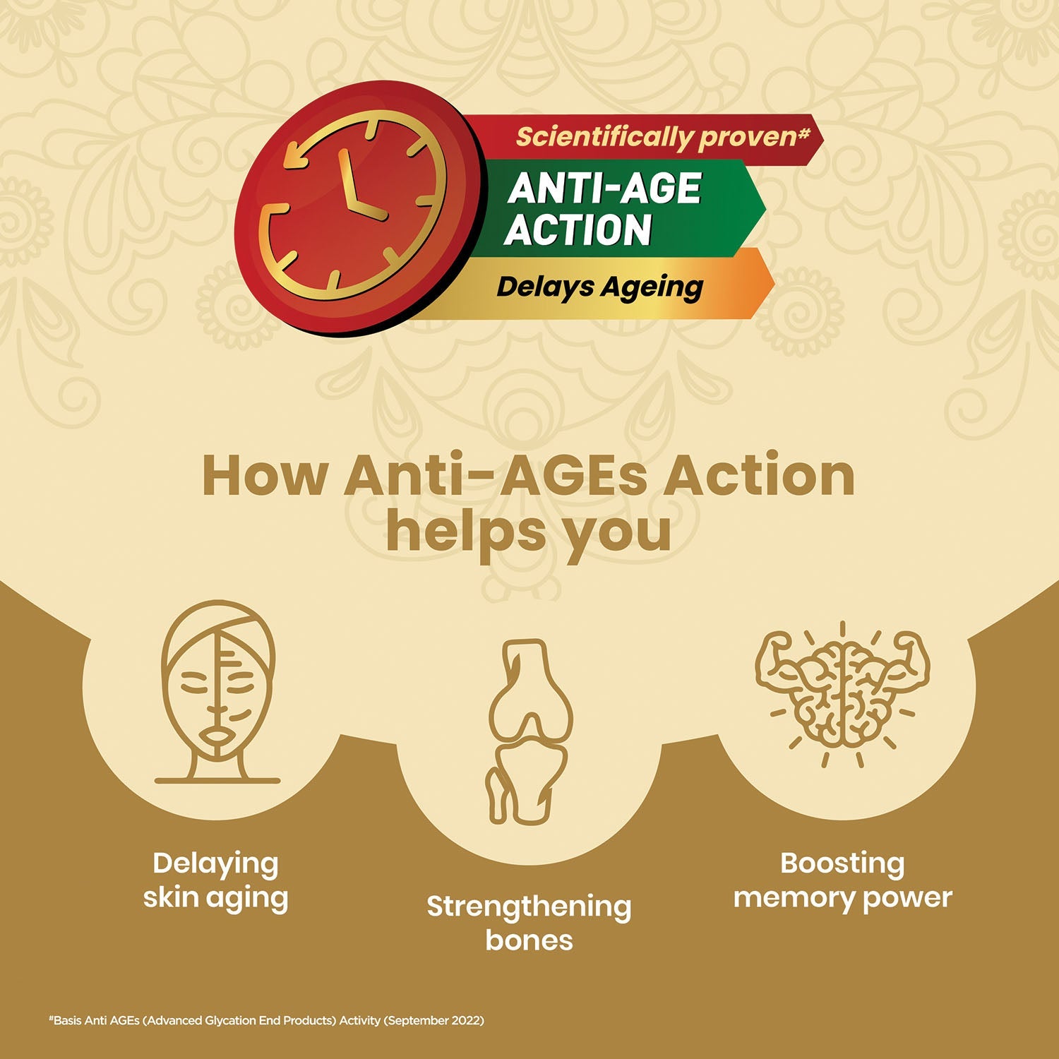 - Prevents formation of AGEs (Advanced Glycation End Products), slowing body ageing