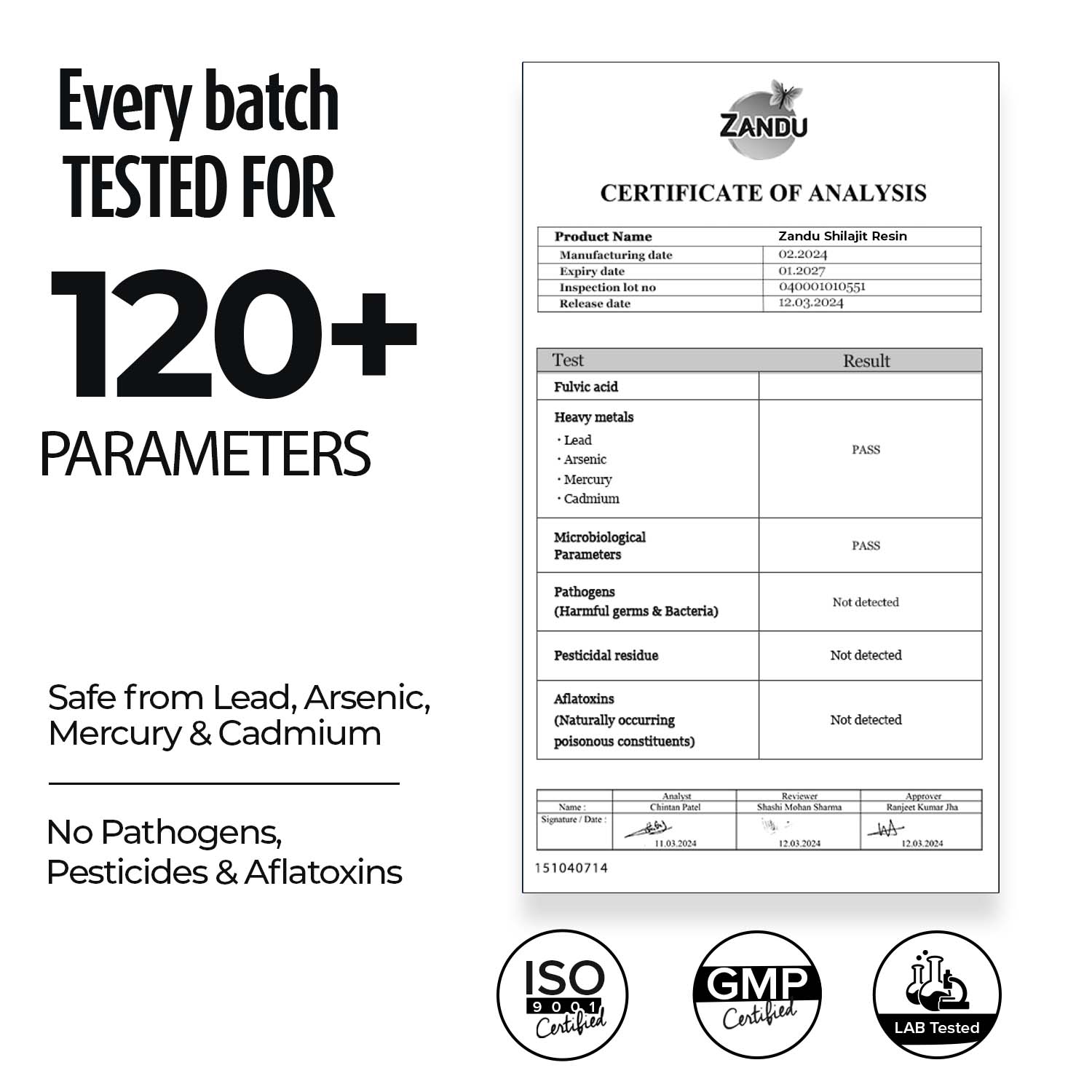 Developed by experts at ZAARC (Zandu Advanced Ayurvedic Research Centre), this 100% natural resin helps improve endurance, reduce fatigue, and promote faster recovery—making it ideal for both active individuals and those seeking daily rejuvenation. It’s free from added colors, chemicals, and artificial flavors, preserving the natural essence of true Himalayan Shilajit.