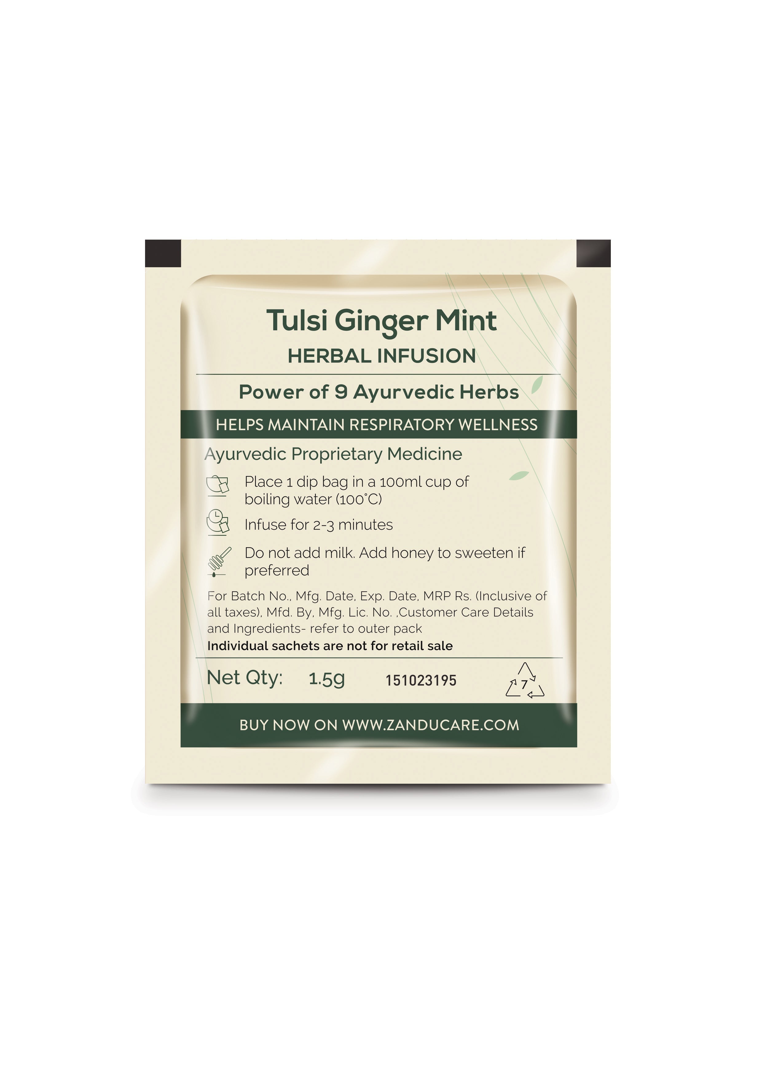 Zandu Tulsi Ginger Mint Herbal Tea Bags – Ayurvedic Infusion for Cold, Cough & Wellness